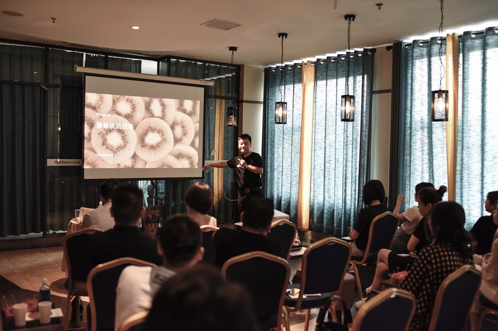 ▲ 中世銳意創(chuàng)意總監(jiān)胡慧先生在展示近期對(duì)字體設(shè)計(jì)新的嘗試的同時(shí),用幾個(gè)關(guān)鍵詞為大家分享